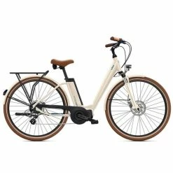 Ce vélo de ville électrique O2Feel iVog City Up 4.1 est livré avec tous les accessoires attendus par le cycliste urbain, qui facilitent son quotidien : pour le stationnement (béquille), le transport de ses affaires (porte-bagages avec rack compatible MIK), le transport d’enfant (porte-bagages homologué), pour rouler sereinement sous la pluie (garde-boue) et dans l’obscurité (éclairages Axa/Spanninga). Les finitions sont soignées : les garde-boue sont assortis au cadre et à la fourche (blanc, bleu ou gris), comme les pneus, les poignées et la selle (marron).