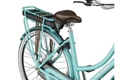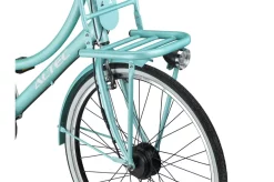 Ce vélo est disponible en trois couleurs différentes : noir, turquoise et bleu. Il est également doté d’une double béquille pour une stabilité maximale à l’arrêt. Le porte-bagages avant est également en aluminium, ce qui le rend inoxydable et super léger !